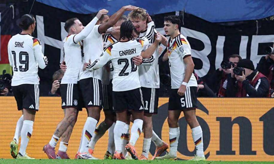 德国队与斯洛伐克赛前同积12分,德国队凭借净胜球优势暂居小组第一。首回合交锋中,德国队客场0-2不敌斯洛伐克,此番回到主场,复仇的火焰在日耳曼战车中熊熊燃烧。比赛开始后,德国队便展现出强大的攻击火力,上半场仅仅23分钟就打入四球,彻底摧毁了斯洛伐克的防线。基米希精准传中,沃尔特马德头球破门,拉开了进球序幕。随后,格雷茨卡直塞助攻格纳布里单刀破门,维尔茨两次助攻萨内完成梅开二度,将比分迅速扩大。下半场,巴库和韦德拉奥果锦上添花,最终德国队以6-0狂胜斯洛伐克,以15分力压对手,锁定小组第一,队史第21次晋级世界杯。这场酣畅淋漓的胜利,也让德国队一扫首回合失利的阴霾,向世界宣告王者归来。