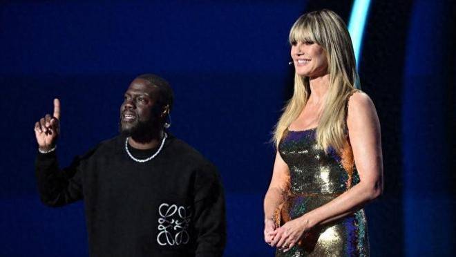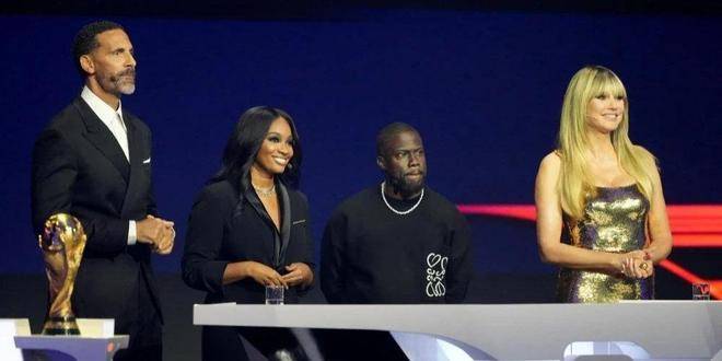 首先,从主持人搭配开始,整个开场就充满了翻车感。足球作为充满激情和情感的运动,世界杯更是全球体育的巅峰舞台,按理说,抽签仪式应当是精心策划、流畅且庄重的。但从第一分钟起,整场活动就显得匆忙而没有准备好。主持人阵容简直可以称作灾难:一个是以身高不足和搞笑闻名的凯文·哈特,另一个是气场强大却全程面无表情的超模海蒂·克鲁姆。两人站在一起,一个高一个矮,风格完全不搭,缺乏任何化学反应,台词生硬,笑点冷场,观众只能尴尬地沉默。让人不禁联想到1989年全英音乐奖主持人翻车的经典场面。细节上也暴露出诸多问题,舞台布置粗糙,话筒频频失灵,甚至连西班牙语采访都没有字幕。看似是小问题,实则暴露了组织方对细节的极度忽视。原本应当代表世界最高水准的体育仪式,竟像是临时搭建的草台班子,实在让人难以置信。