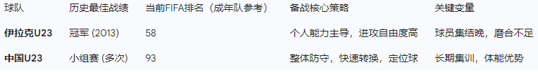 这是一场典型的“天赋 vs 体系”的较量。伊拉克拥有决定比赛的个人能力,但缺乏系统的准备和整体性;中国队缺乏进攻天赋,但拥有钢铁般的战术纪律和体能储备。考虑到这是赛会制首战,双方都会略显保守。中国队在普切带领下的“零封属性”极大增加了比赛进入闷战的可能性。
